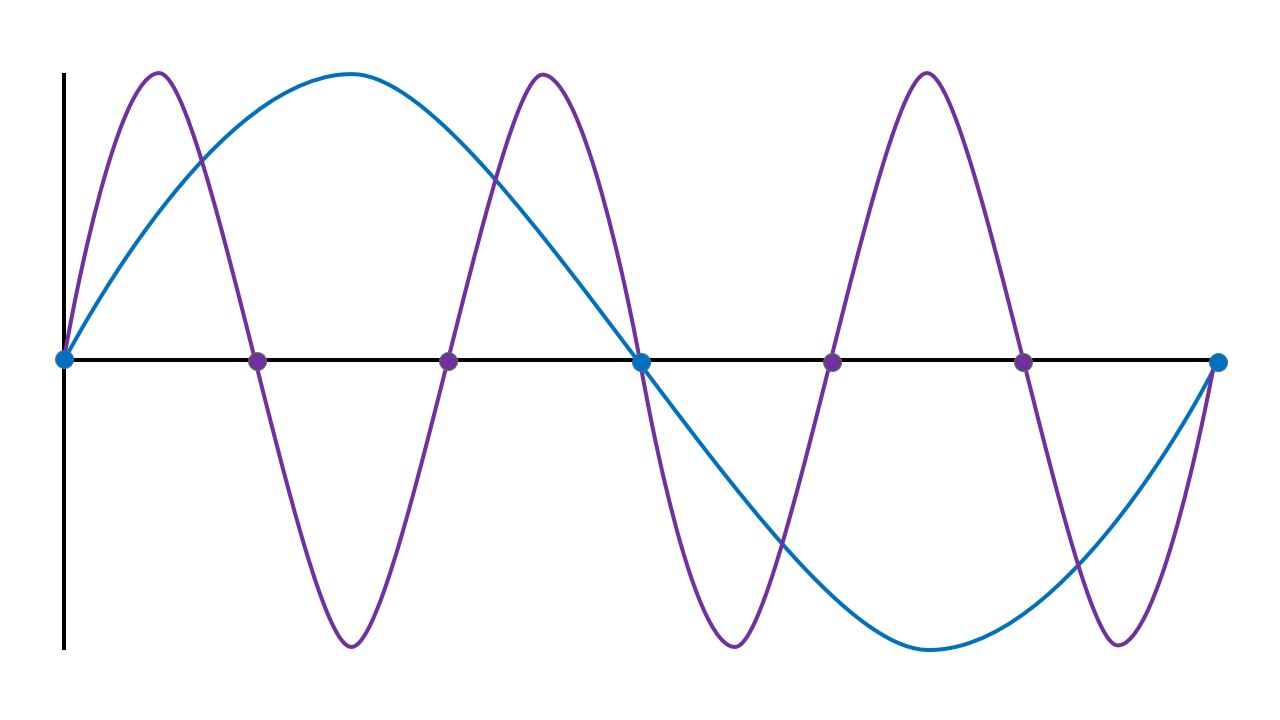 As the compressions and rarefactions push back and forth, a standing wave is created. Since the tube is a fixed length, waves can be produced with wavelengths that relate to the length of the tube. Since one end of the tube is open, the instrument's fundamental, or the lowest-frequency wave the instrument can produce, is twice the length of the tube. The frequencies of other pitches will be related to the fundamental one through a harmonic series.