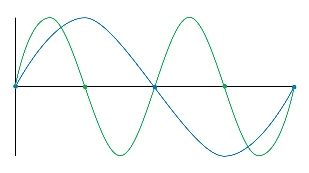 As the compressions and rarefactions push back and forth, a standing wave is created. Since the tube is a fixed length, waves can be produced with wavelengths that relate to the length of the tube. Since one end of the tube is open, the instrument's fundamental, or the lowest-frequency wave the instrument can produce, is twice the length of the tube. The frequencies of other pitches will be related to the fundamental one through a harmonic series.