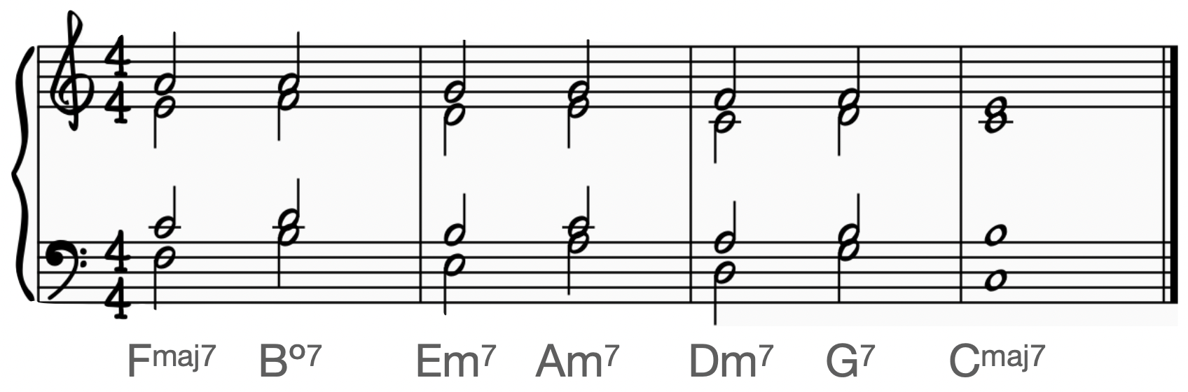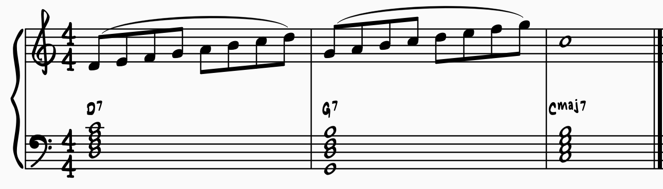 To take one example of Parker's innovations, we can look at the common jazz progression called a ii-V-I (or more commonly, a ii7-V7-I7).
