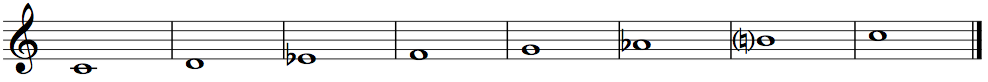 The first, called a natural minor scale is simply the Aeolian mode (Mode VI) of the diatonic scale. Compared to a major scale, scale degrees 3, 6, and 7 are a semitone lower.