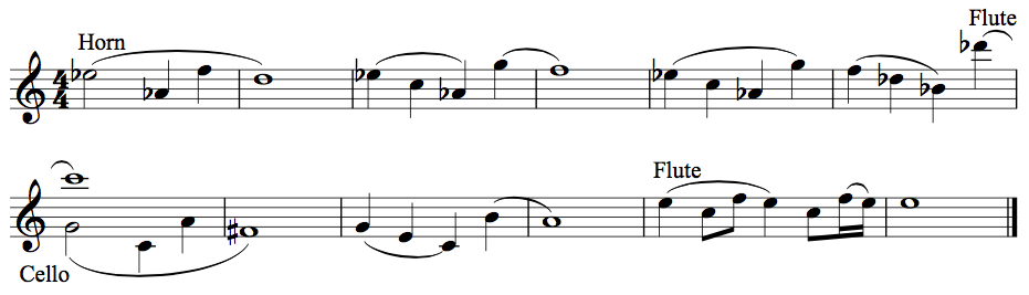 As Yoda gives his parting words to Luke Skywalker, the leitmotif is played somberly in the horn in A♭ major. The theme then passes to the cello in C major, before the flute gives a final warning in A-minor, based on the leitmotif in augmentation.
